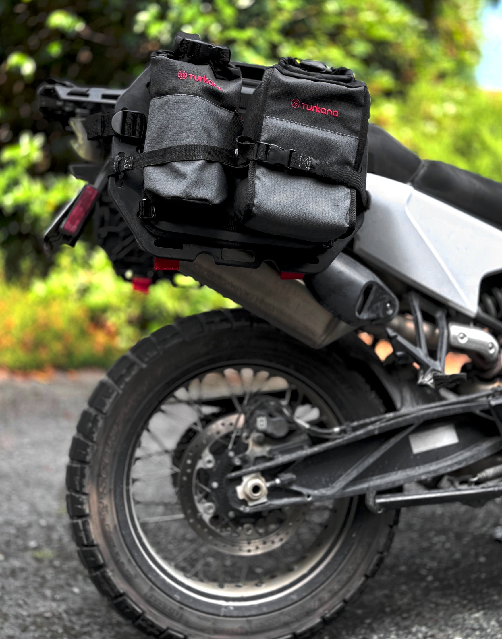 Using the proven MOLLE/PALS webbing as a strong bond lets you mix and match different sizes (3L to 20L Trekbags™, Bushbaby™ utility pouch and even Oxpacker™ water bottle holders) to perfectly suit your adv motorbike expeditions. From weekend getaways to epic offroad, long distance or back country motorbike trips. Whether you crave space for tools or souvenirs, the GeckoGrip™ adapts to your ever-changing adventure.